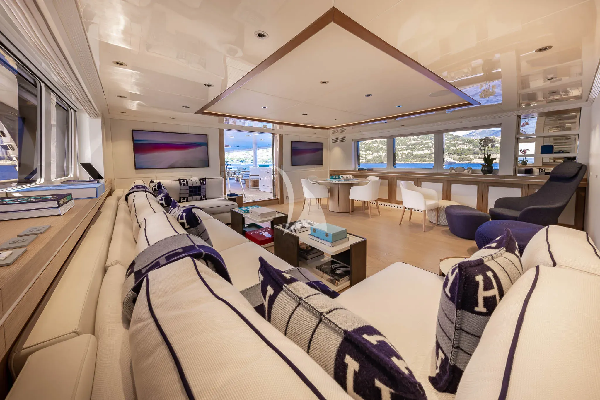 Located on the Main Deck, is an incredible full-beam master suite, equipped with en-suite, dressing room, lounge area and office. Stand out features in the master suite include a sauna, spacious dressing room and frame TV.