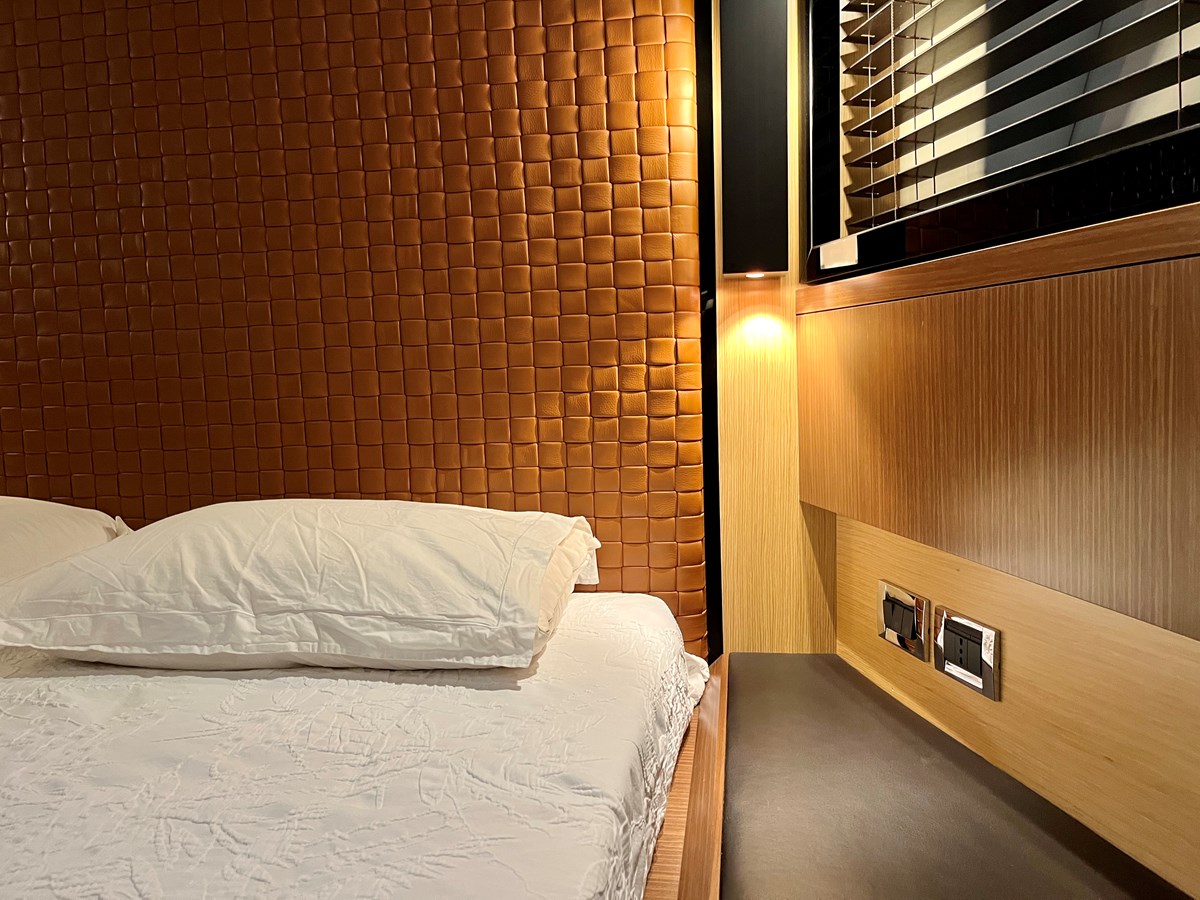 The lower deck offers a luxurious sleeping area, featuring a full-beam master cabin, a VIP cabin with a king-size bed, and a guest cabin with twin beds. Each cabin is beautifully appointed with smart layouts to ensure maximum comfort and privacy. The guest bathroom is accessible from the corridor, ensuring practical and functional accommodation.