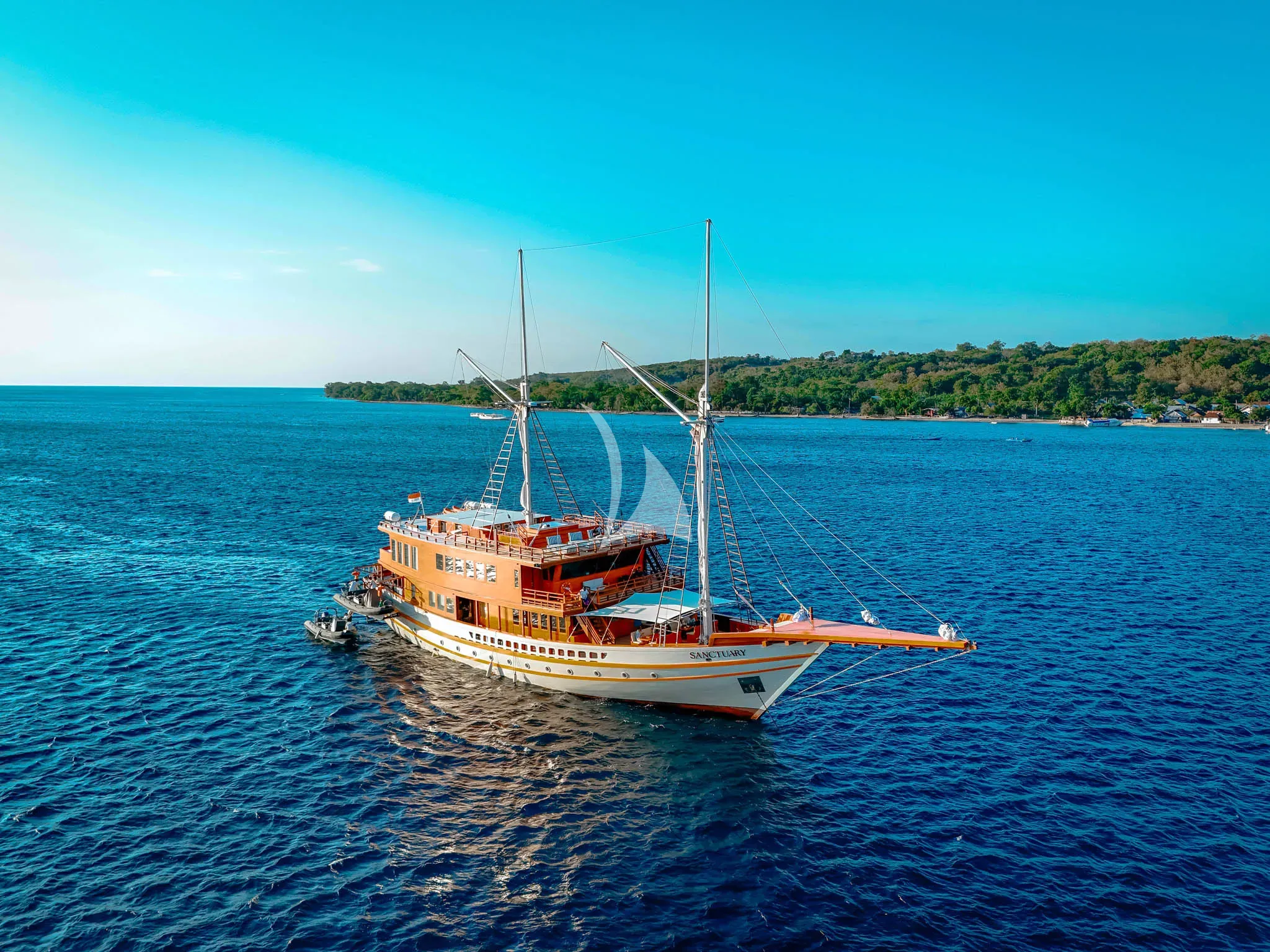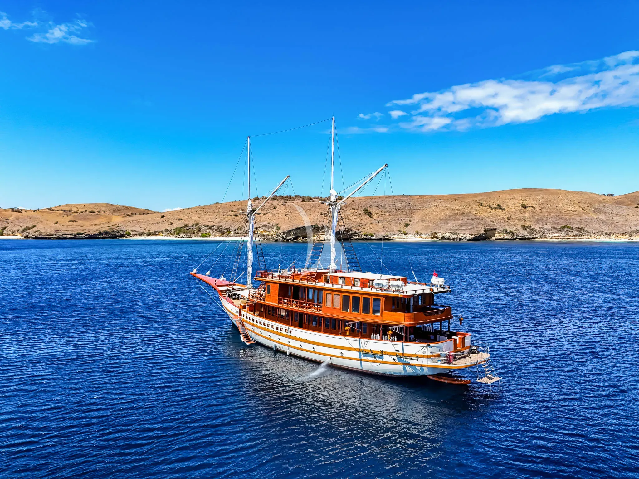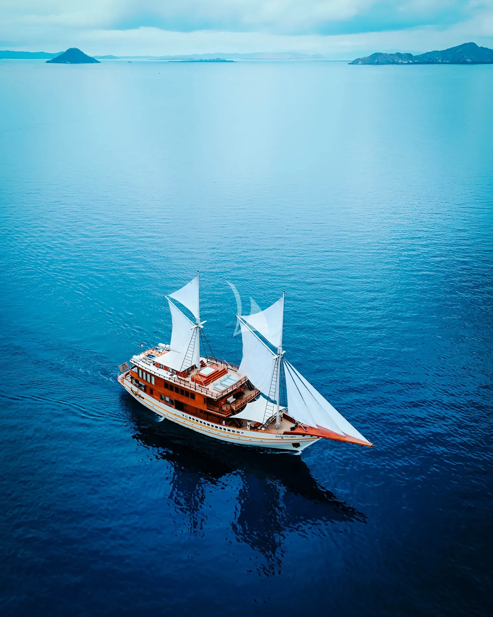 SANCTUARY is a traditional Indonesian Phinisi, crafted with exceptional artisanal expertise and enhanced with modern luxury. Built from noble wood using the ancestral techniques of the Bugis shipbuilders of Sulawesi, it seamlessly blends authentic charm, high-end comfort, and smooth sailing. With its majestic sails and refined spaces, SANCTUARY is designed for exploring the most breathtaking marine landscapes. Its elegant design and luxurious amenities make it the perfect yacht for an exclusive experience, combining adventure, tranquility, and cultural discovery in the heart of the Indonesian archipelago.