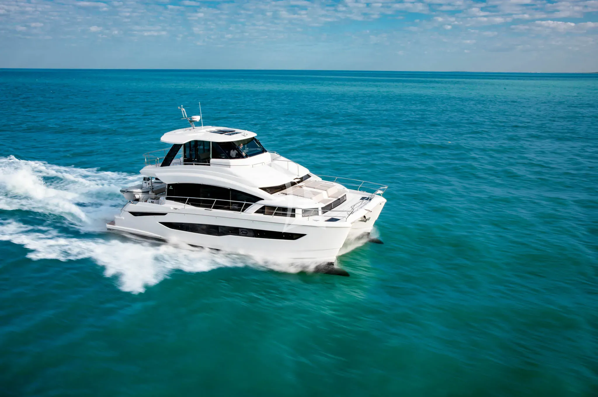 MARY’S GRACE is a brand-new Aquila 54 offering guests the chance to cruise effortlessly through the islands of Greece and the Mediterranean. With an architectural layout that delivers the presence and comfort of a much larger yacht, combined with an exceptional level of stability from her catamaran configuration, MARY’S GRACE is the ideal choice for for relaxed island cruising with family or friends. One of her standout features is the full-beam master suite, located on the main deck for outstanding accessibility. The ensuite and dressing areas sit privately within the catamaran’s hulls to either side, creating a spacious, beautifully considered retreat rarely found on a yacht of this size. Across the interior, large windows and refined finishes create a calm, contemporary atmosphere that feels open and welcoming. Three double guest cabins are elegantly arranged to offer privacy while maintaining easy flow throughout the yacht. Out on deck, MARY’S GRACE is primed for maximising your outdoor adventure: whether it’s relaxing on the panoramic flybridge or finding your next fishing spot, sunbathing on the sporty foredeck or jumping into crystal clear waters, MARY’S GRACE has it all. Thanks to her low fuel consumption and excellent cruising efficiency from her twin hulls, MARY’S GRACE offers the freedom to explore, enjoy and experience the best of the Mediterranean, all supported by a dedicated crew who deliver a warm and attentive service.