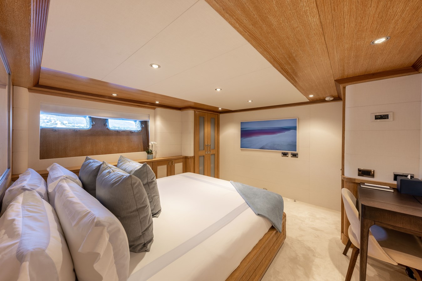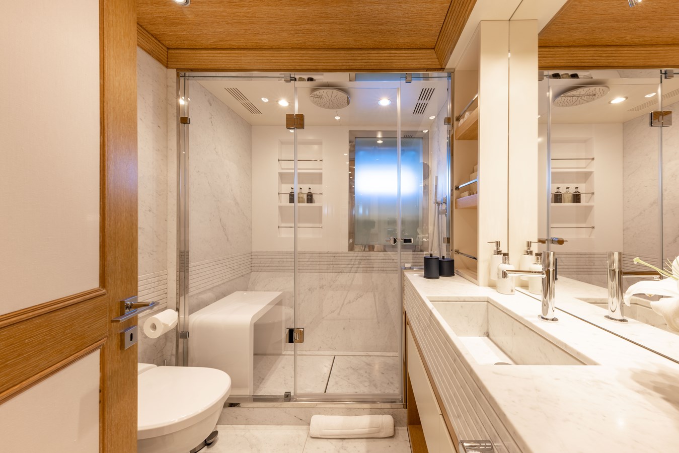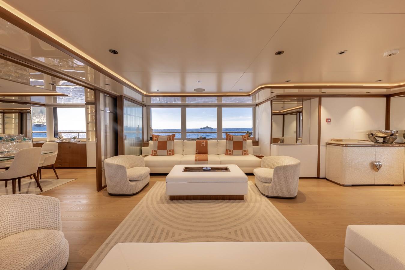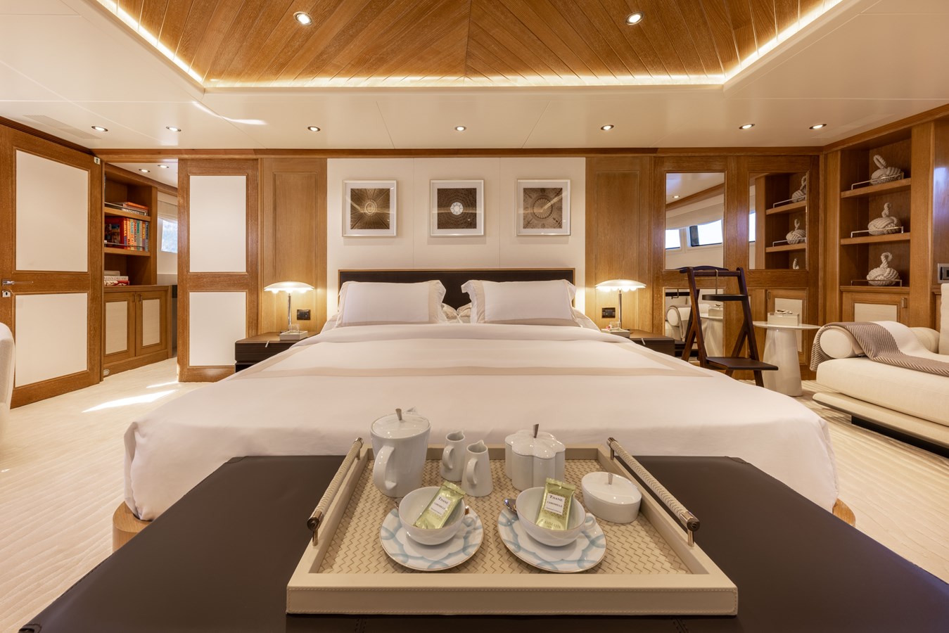 Motor Yacht SOLAFIDE can accomodate 16 guests in 6 cabins, all looked after by a crew of 12. Her interior is the work of Supernova design studio.