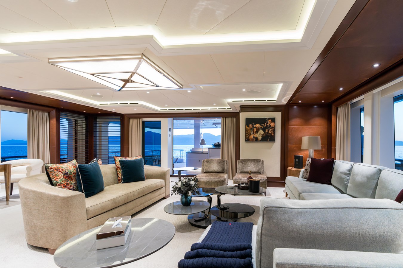 Motor Yacht HAMPSHIRE can accomodate 12 guests in 12 cabins, all looked after by a crew of 19. Her interior is the work of Harrison Eidsgaard.