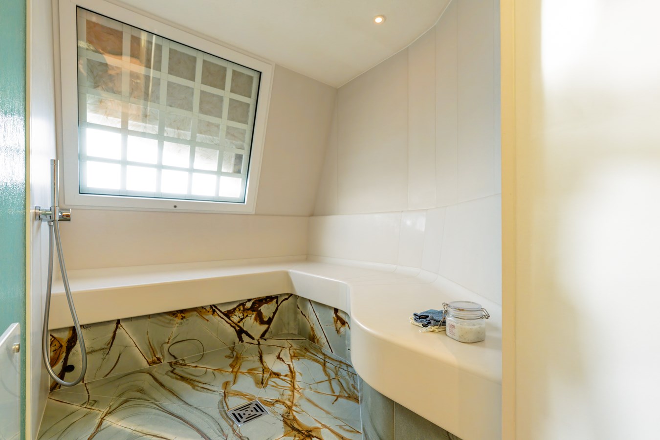Her Semi-Displacement hull, built in Aluminum, has a beam of 9.4m , a draft of 3m and was designed by Heesen.