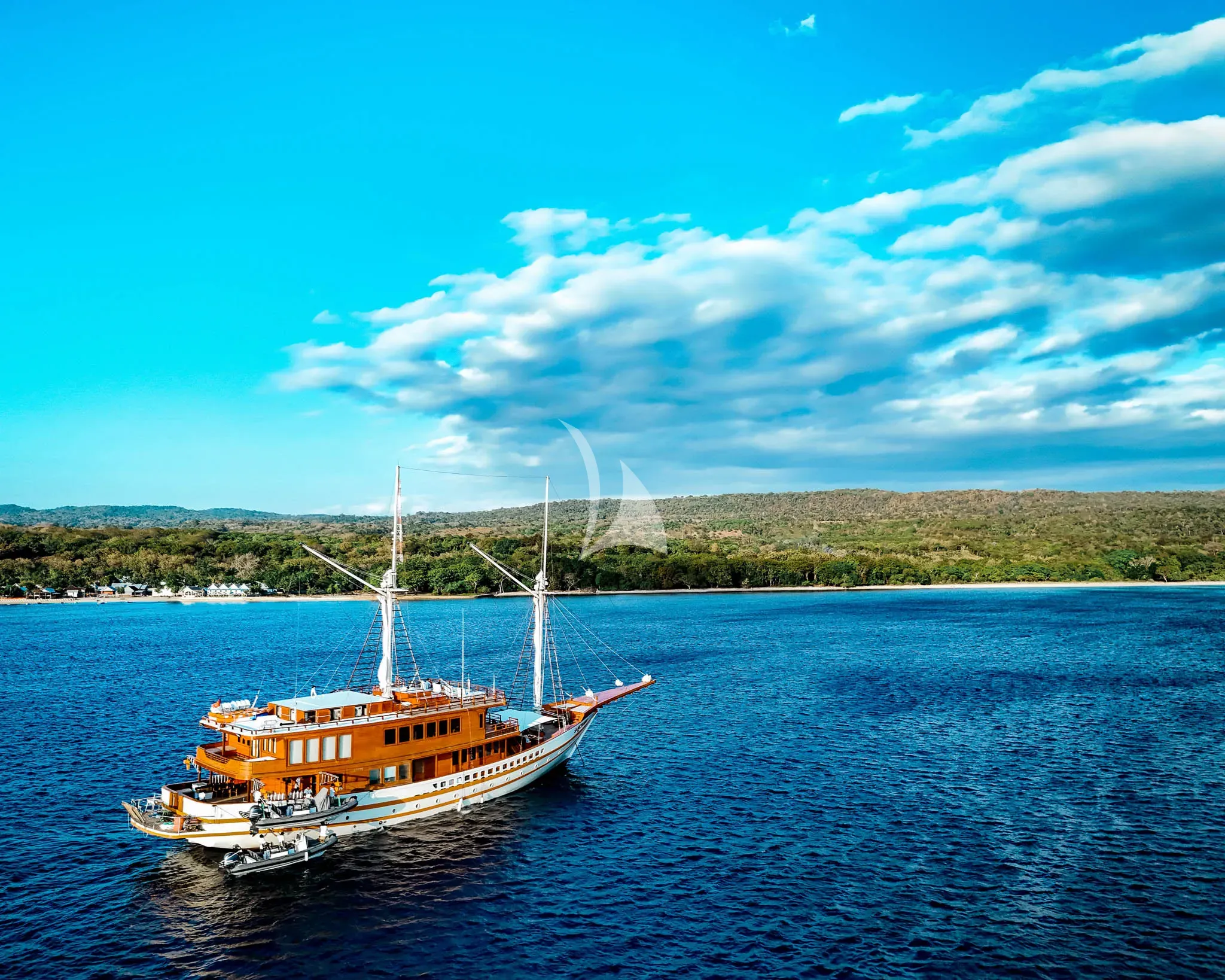 SANCTUARY is a traditional Indonesian Phinisi, crafted with exceptional artisanal expertise and enhanced with modern luxury. Built from noble wood using the ancestral techniques of the Bugis shipbuilders of Sulawesi, it seamlessly blends authentic charm, high-end comfort, and smooth sailing. With its majestic sails and refined spaces, SANCTUARY is designed for exploring the most breathtaking marine landscapes. Its elegant design and luxurious amenities make it the perfect yacht for an exclusive experience, combining adventure, tranquility, and cultural discovery in the heart of the Indonesian archipelago.
