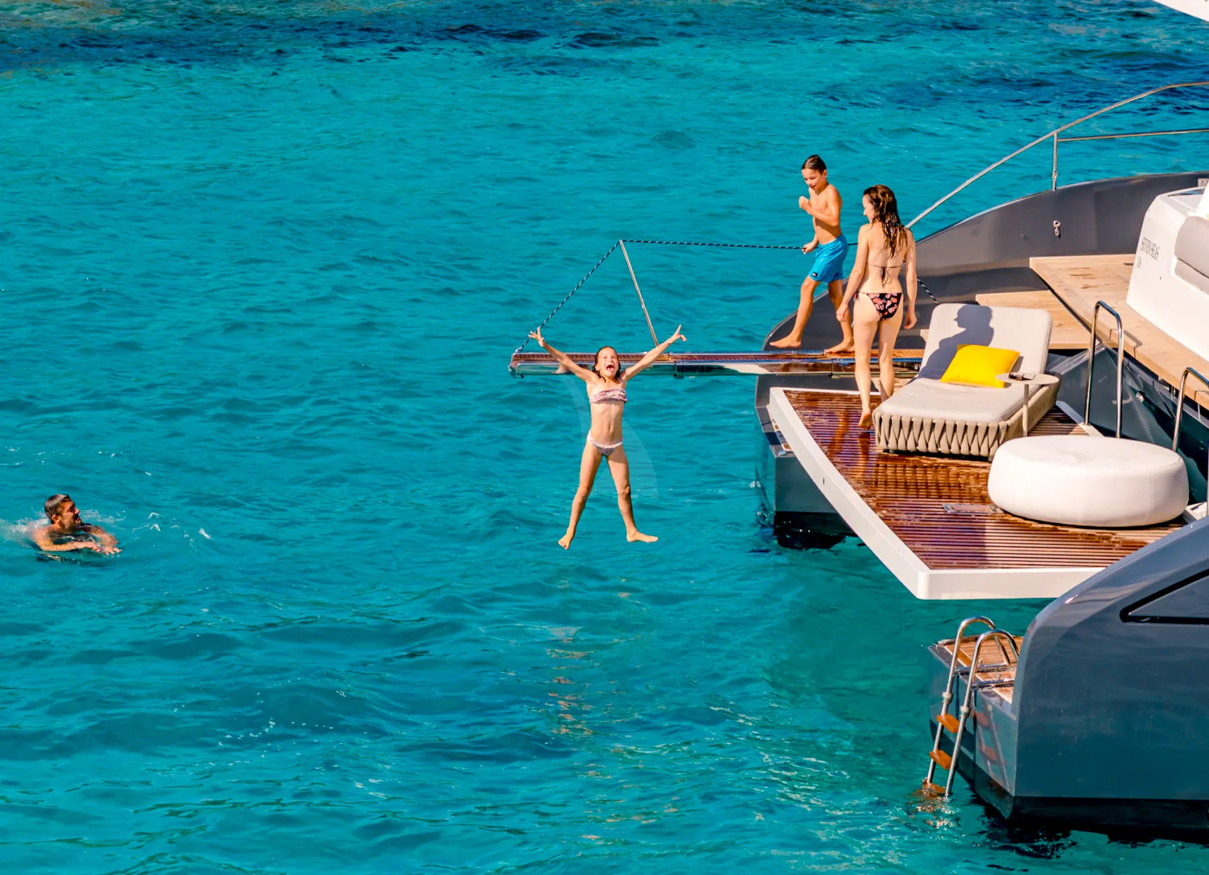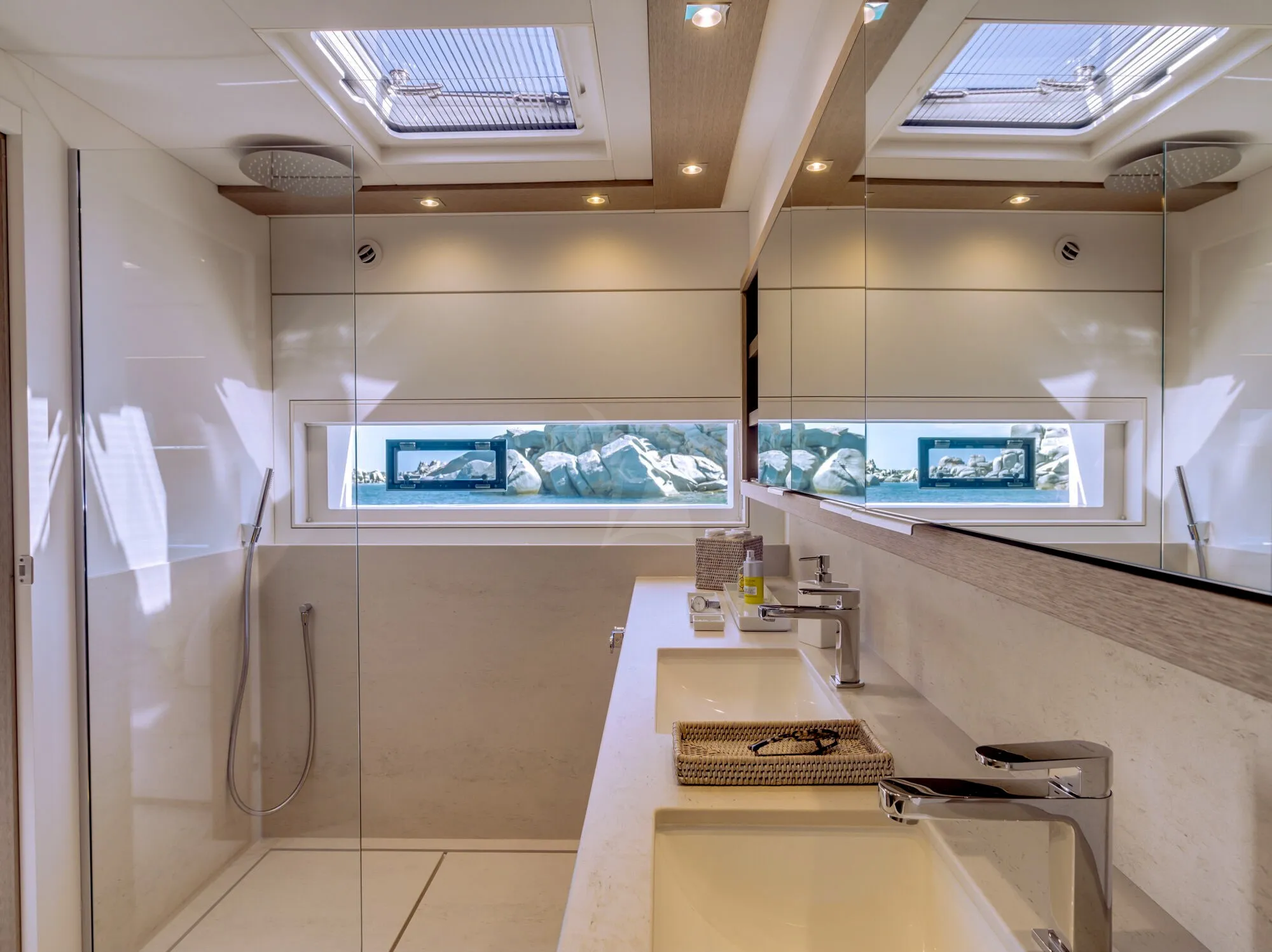 This superb Lagoon was launched in 2023 and accommodates up to 8 guests in 4 cabins. Built using the Seventy 7 forward galley configuration, amenities onboard are perfectly geared towards charter getaways for all the family. With ample deck space, panoramic views forward and aft and an incredible swim platform for fun in the water, J. SPARROW is an adventure not to be missed. Onboard amenities include a main salon with lounge and dining area, an incredible Cockpit with panoramic views and seating forward and aft and a flybridge with additional lounge and dining. J SPARROW is stocked with a selection of toys including Seabobs and an electric foil board. She is also equipped with air conditioning and WiFi throughout.