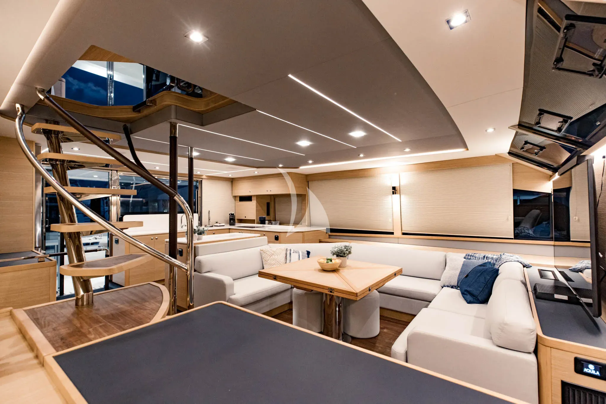MARY’S GRACE is a brand-new Aquila 54 offering guests the chance to cruise effortlessly through the islands of Greece and the Mediterranean. With an architectural layout that delivers the presence and comfort of a much larger yacht, combined with an exceptional level of stability from her catamaran configuration, MARY’S GRACE is the ideal choice for for relaxed island cruising with family or friends. One of her standout features is the full-beam master suite, located on the main deck for outstanding accessibility. The ensuite and dressing areas sit privately within the catamaran’s hulls to either side, creating a spacious, beautifully considered retreat rarely found on a yacht of this size. Across the interior, large windows and refined finishes create a calm, contemporary atmosphere that feels open and welcoming. Three double guest cabins are elegantly arranged to offer privacy while maintaining easy flow throughout the yacht. Out on deck, MARY’S GRACE is primed for maximising your outdoor adventure: whether it’s relaxing on the panoramic flybridge or finding your next fishing spot, sunbathing on the sporty foredeck or jumping into crystal clear waters, MARY’S GRACE has it all. Thanks to her low fuel consumption and excellent cruising efficiency from her twin hulls, MARY’S GRACE offers the freedom to explore, enjoy and experience the best of the Mediterranean, all supported by a dedicated crew who deliver a warm and attentive service.