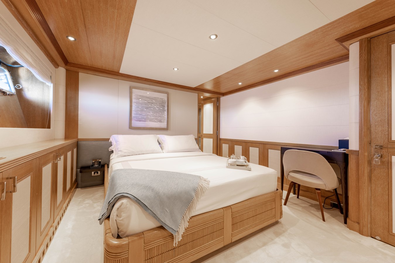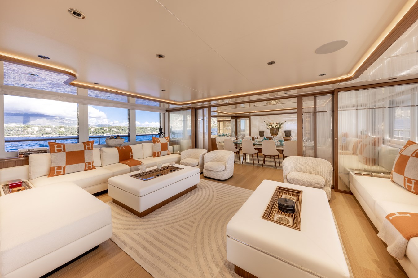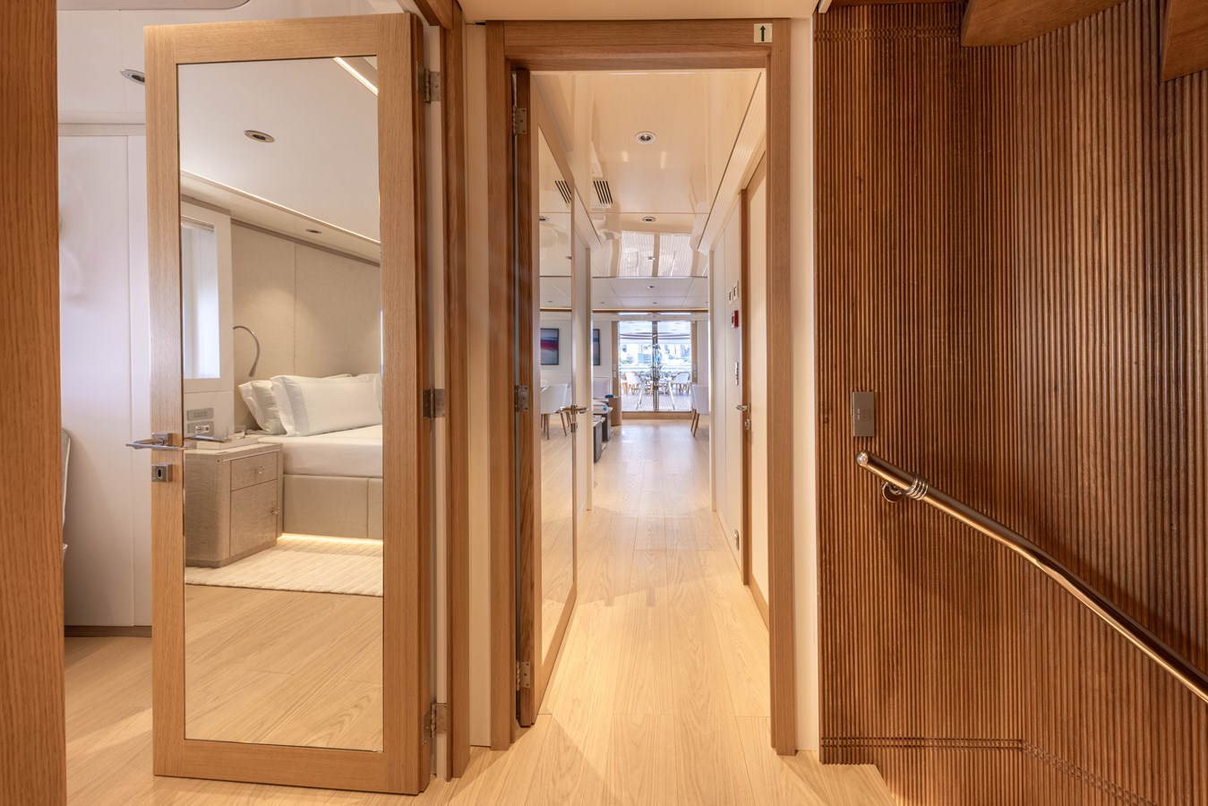 Motor Yacht SOLAFIDE can accomodate 16 guests in 6 cabins, all looked after by a crew of 12. Her interior is the work of Supernova design studio.