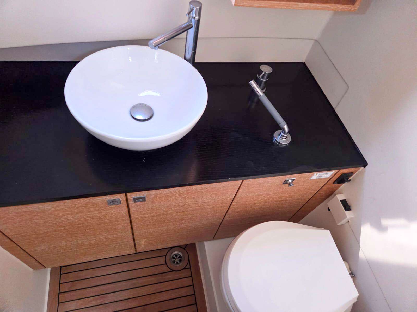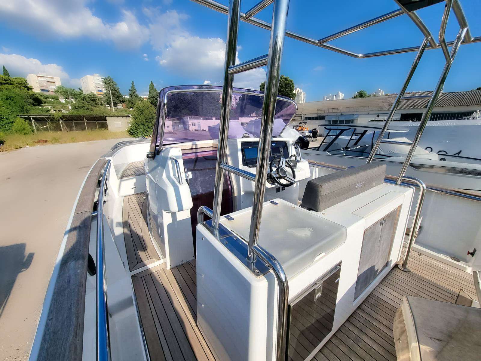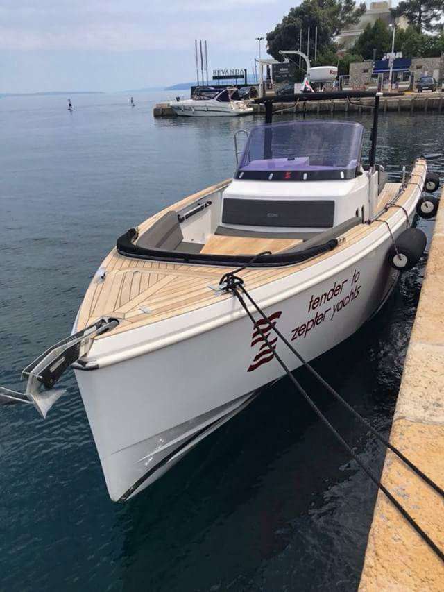 Her clean, well-balanced exterior lines and thoughtfully arranged spaces suit both cruising and relaxing at anchor, whether operating independently or alongside a larger mothership. The cockpit provides a generous, sociable living area with an ergonomic helm station and excellent visibility, complemented by sunbathing areas at both bow and stern that reinforce her true dayboat character. Below deck, space is optimised to include a cabin and separate bathroom, full of natural light.