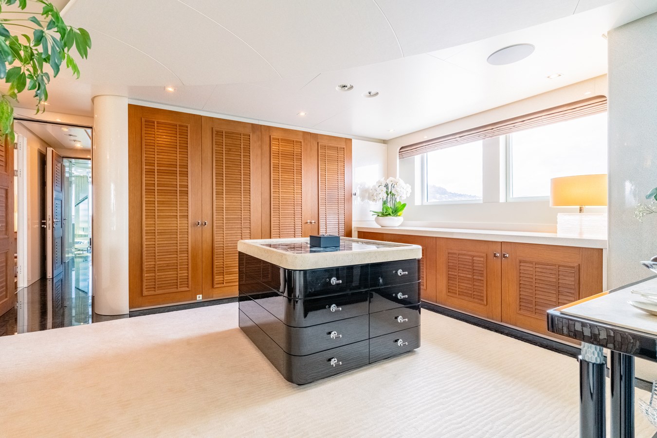Motor Yacht AFTER YOU can accomodate 12 guests, all looked after by a crew of 13. Her interior is the work of Ken Freivokh, Reverberi Design.